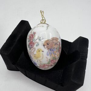 VINTAGE REUTTER Porzellan Rabbit Bunny Chick Porcelain Egg Ornament Easter 3.5"