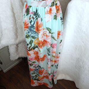 REVAMPED TURQUOISE/MINT FLORAL PLUNGE NECK MAXI DRESS SZ.S NWT. GORGEOUS DRESS IN NEW WITH TAG CONDITION.