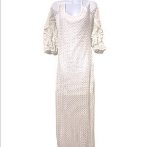 REVE Crochet Maxi Dress Bell Ruffle Sleeve Ecru Size Large