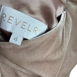 REVELRY Asher Velvet Dress in Champagne | Bridesmaid | Cross Straps Front Slit 4