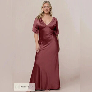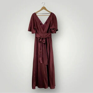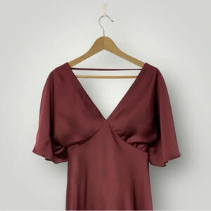 REVERLY Maya Satin Dress in Cabernet Sz 8