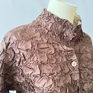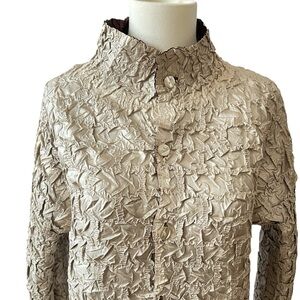 REVERSIBLE CRINKLE TEXTURED TOPPER JACKET M NO TAGS DRESSY LIGHTWEIGHT BUTTON UP