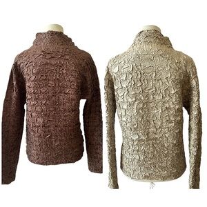 No tags, fits like a womens size Medium, reversible, brown and beige gold, button front, long sleeves.