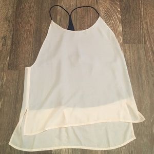 Flowy racerback tank that is reversible, only worn once and in excellent condition! The dark color is NAVY and the light color is a very light PEACH color.