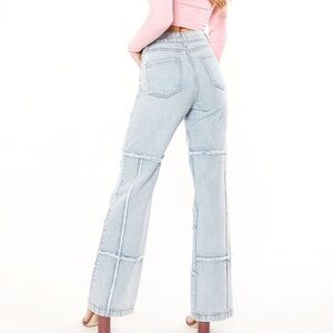4ever and always! Our heart belongs to denim - Introducing the Lover fit featuring a high rise, straight leg fit. This jean features frayed, grid detailing on front & back for a retro, yet closet essential piece.