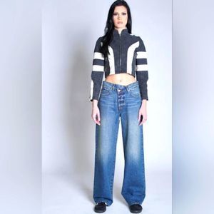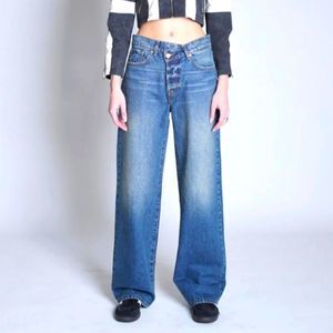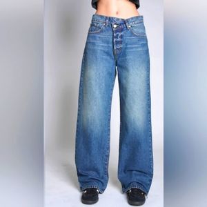 REVICE MID RISE OVERSIZED JEANS MADE WITH LIGHT WEIGHT MATERIAL MAKING THEM A PERFECT FIT,WITH FIVE POCKETS AND A CROSSED WAISTBAND TO MAKE THEM A PERFECT CASUAL LOOK.