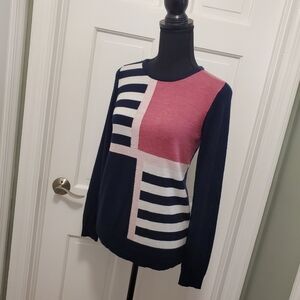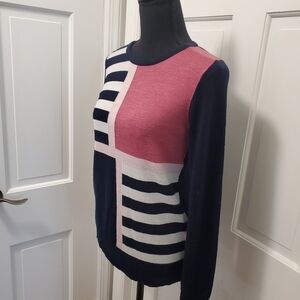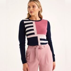 REVIEW Australia Colour Me Block 100% Merino Wool Navy/Pink Size 10 Sweater