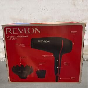 REVLON SmoothStay Coconut Oil Infused Hair Dryer w/ Diffuser & Concentrator NEW