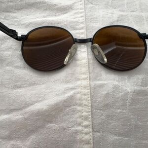These are some totally cool vintage REVO sunglasses circular full-rim. They've seen some time poolside and the reflective lens takes you back to a time, and yet they almost take on a futuristic look some 30 years or so I have owned them. Should be clear with no Rx to concern yourself with.