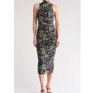 REVOLVE AFRM Sleeveless Mockneck Midi Bodycon Black Floral Size Medium NWT