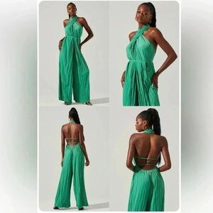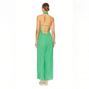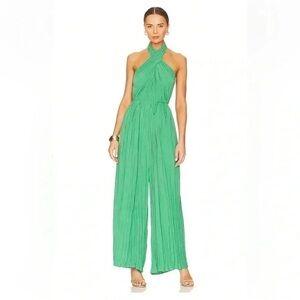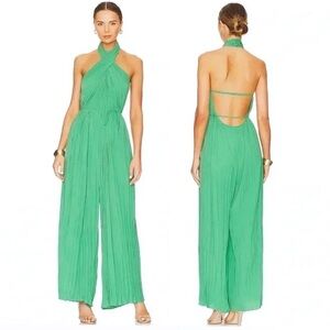 REVOLVE ASTR The Label Damia Criss Cross Halter Wide Leg Jumpsuit Green Small