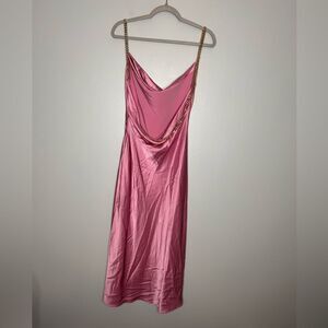 Silk Slip Dress with Gold chain straps. Featuring front and back cowl neck.