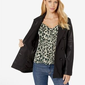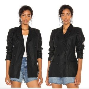 REVOLVE Blank NYC Black Long Vegan Leather Double-Breasted Blazer NWT