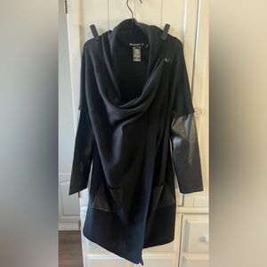 REVOLVE Blank NYC Black Cotton Sweater Faux Leather Combo Wrap cardigan