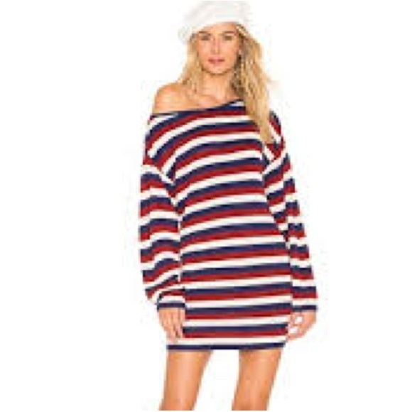 REVOLVE Echo Sweater Dress in Multi Stripe HOUSE OF HARLOW 1960 Red Blue Small