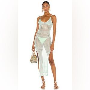 REVOLVE Flook The Label Kendall Dress in Mint Crochet Sheer Low Back Maxi NWT L