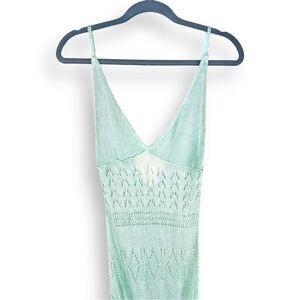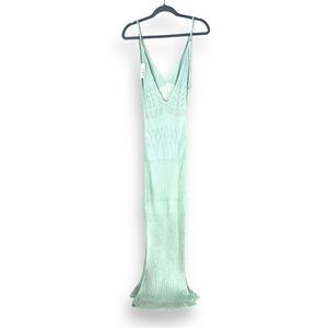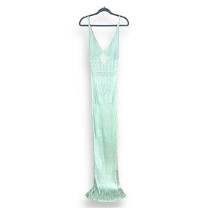 Flook The Label Kendall Dress in Mint Crochet Sheer Low Back Maxi NWT L