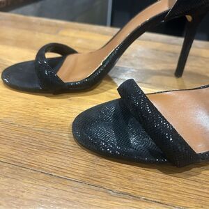 Halston Sequin Black Barely There Ankle Strap Stiletto Sandals Heels