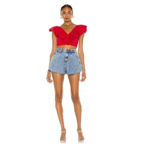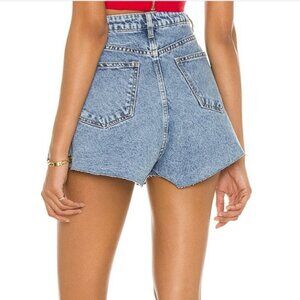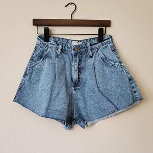 100% cotton. Hand wash. Zip fly with button closure. 5-pocket design. Light fading detail. Raw cut hem. Shorts measure approx 14.5" in length. Made in Brazil.