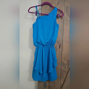 REVOLVE Krisa Asymmetrical Layered Mini Dress in Blue. Size XS