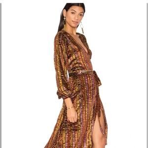 REVOLVE LPA Long Sleeve Dotty Gold Sparkling Multi Colored Wrap Dress 70 XS