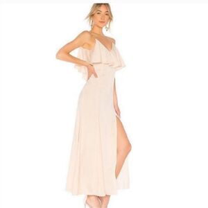 REVOLVE, LPA V Neck Ruffle Gown in Champagne