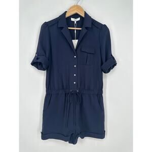 REVOLVE Likely Ellie Romper Button Front 3/4 Sleeve Crepe Navy Blue, NWT