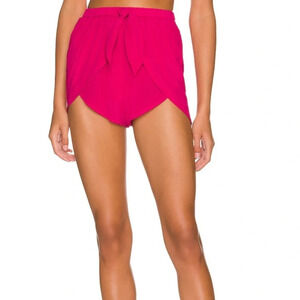 Description: new smocked waistband with tie detail in a fuchsia pink. Features a lightweight crepe fabric. Original price of $118!