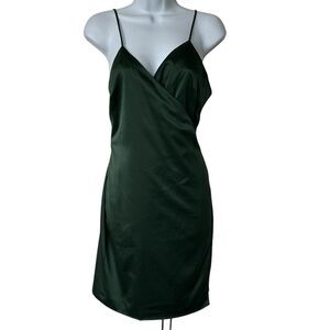 REVOLVE MAJORELLE Green Nina Satin Wrap Mini Spaghetti Strap Dress Women's Large