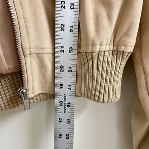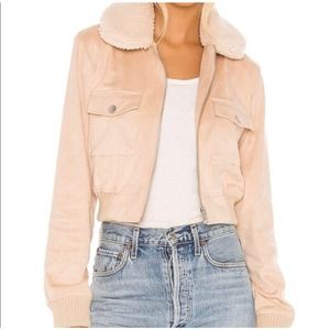 REVOLVE Majorelle Cropped Sherpa Collar Suede Bomber Jacket Sand Beige Size XXS
