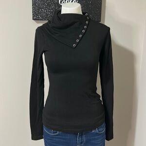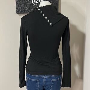 REVOLVE NBD Harbor Turtleneck Shirt Black Fleece Snap Button Placket Top XS NEW