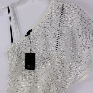 REVOLVE NBD Ibiza White Silver Sequins Mini Dress