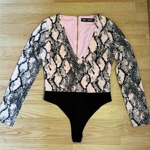 REVOLVE NBD x Naven Snakeskin Print V-Neck Bodysuit Sz Small