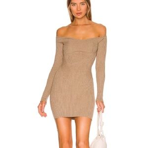 REVOLVE NDB Zacari Bodycon Mini Dress in Olive Green-Brown Ribbed XS, Like new!