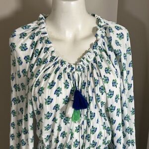 REVOLVE Playa Lucila Printed Mini Dress Floral Ruffle Tiered Long Sleeve White L
