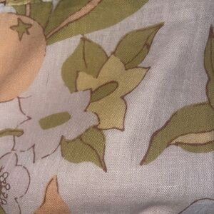 EUC with no flaws. . Stunning and oh so feminine this dress is really gorgeous. The prints is a floral motif in soft pastel shades. Fully lined. Pull-on styling. Ruffle design at hem. The dress is 55% linen, 45% rayon.Lining: 100% cotton. Hand wash. Size large. Flat lay measurements are listed below and are approximate.
