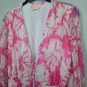 REVOLVE Rococo Sand Womens Ava Maxi Dress Sz XS Pink Tiered Flowy Boho Festival Button Front Deep V Neck Sheer Vacation Resort Size XS Excellent Pre-owned Condition Ships Fast