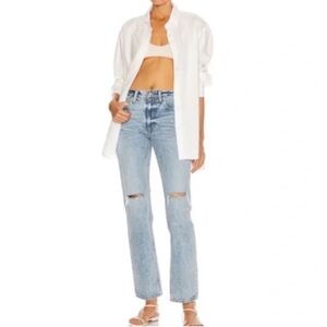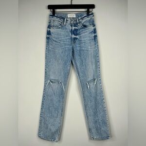 REVOLVE SLVRLAKE Straight Jeans NWOT Size 24 Blue Distressed Lonely Heart Wash