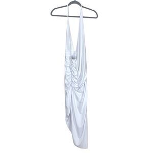 REVOLVE Superdown Mia Drape Slit Dress in White Stretch Asymmetric Design Small