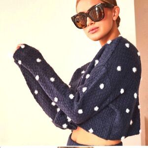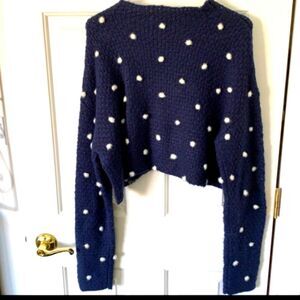 Tularosa beautifully designed in a cropped silhouette long sleeve sweater. Tularosa's x Revolve Sarah Pullover sweater is accentuated with fuzzy Pom Poms, mock neck collar. In excellent condition.