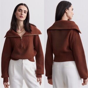 Varley Mentone Half Zip Knit Pullover Sweater in Tortoise Shell