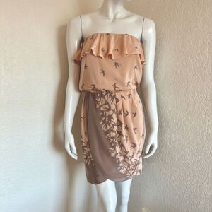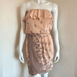 Amanda Uprichard Dress Peach Taupe Silk Birds Strapless Size M