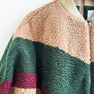 REVOLVE X J.O.A. Colorblock Teddy Faux Fur Jacket In Beige & Forest SZ Small
