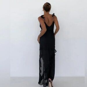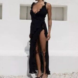 REVOLVE X Rumored just like Heaven Maxi Dress Black Ruffle Wrap SHEER NWT Medium