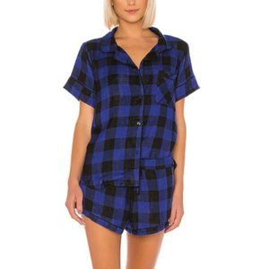 REVOLVE x PLUSH Buffalo Plaid Pajama Set & Scrunchie, Blue XS NWT