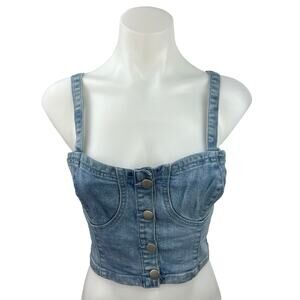 REVOLVE x Superdown Women's Blue Denim Button Sleeveless Cami Tank Crop Top M