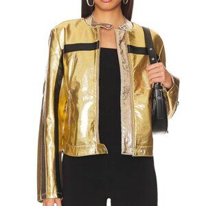 REVOLVE x We The Free FAST LANE METALLIC Faux Leather Jacket in Gold Combo