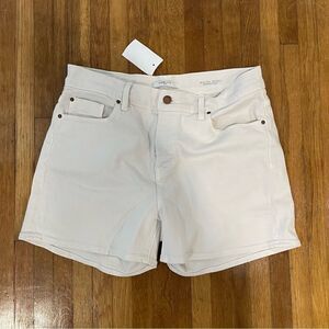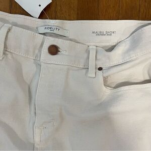 New fresh Ivory denim girlfriend short. In Fidelity’s steels fabric that stretches with every move you make! Make comfort a top priority!