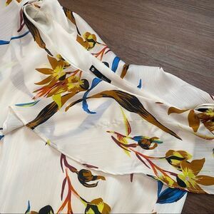 Sold on Revolve, Krisa Ruffle mini one shoulder floral dress. There’s a snag on the front ruffle that is shown above, it’s hardly noticeable when worn