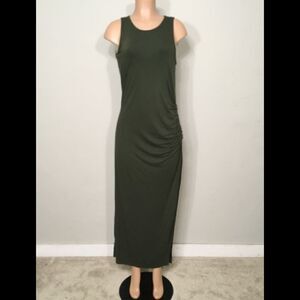 REVOLVE & Three Dots maxi ruched dress. Olive green. Great basic dress perfect for layering.